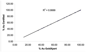 GoldXpert在測(cè)量經(jīng)認(rèn)證的金合金標(biāo)準(zhǔn)樣件中的金元素時(shí)所表現(xiàn)的精確性