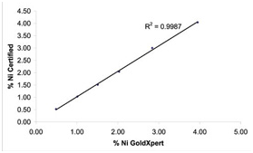 GoldXpert在測(cè)量經(jīng)認(rèn)證的金合金標(biāo)準(zhǔn)樣件中的鎳元素時(shí)所表現(xiàn)的精確性