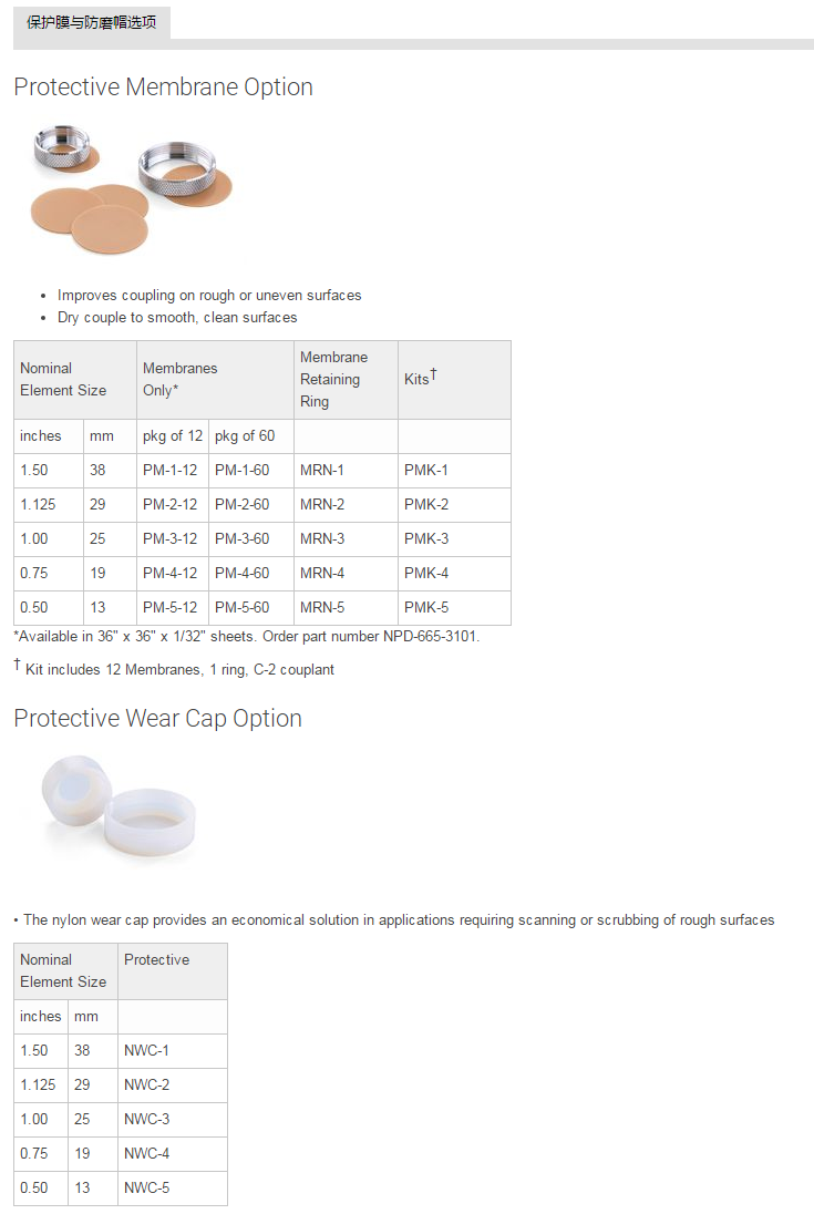 保護面探頭是一種單晶縱波接觸式探頭,可與延遲塊、保護膜或防磨保護蓋一起使用。